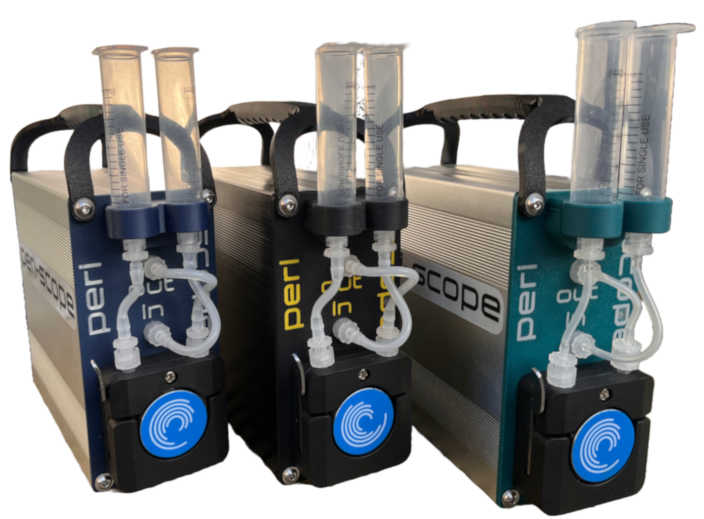 Your Peri-Scope is supplied pre-calibrated in a waterproof, drop-proof case with a GPS module, a USB memory stick, a mains power adapter, a laminated quick start guide and a starter set of accessories including 250 micron filter funnel, plastic pipettes and 10m/l syringe bodies.